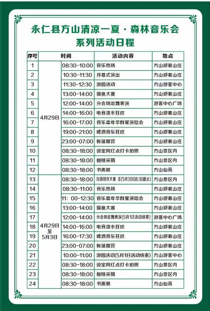 阳光城的五月,已经有了点夏日的味道,正是人们出门游玩、消暑的好时节。4月29日—5月3日,楚雄州永仁县方山景区内,将举办“方山清凉一夏·森林音乐会”系列活动。诚邀您一起体验“天然氧吧”的魅力!