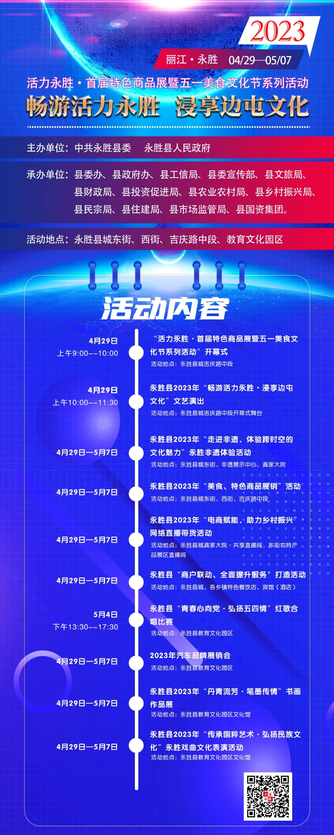 4月29日至5月7日,永胜县将举办“活力永胜·2023年首届特色商品展暨五一美食文化节活动”。欢迎“五一”到永胜,体验“活力永胜”的独特魅力。
