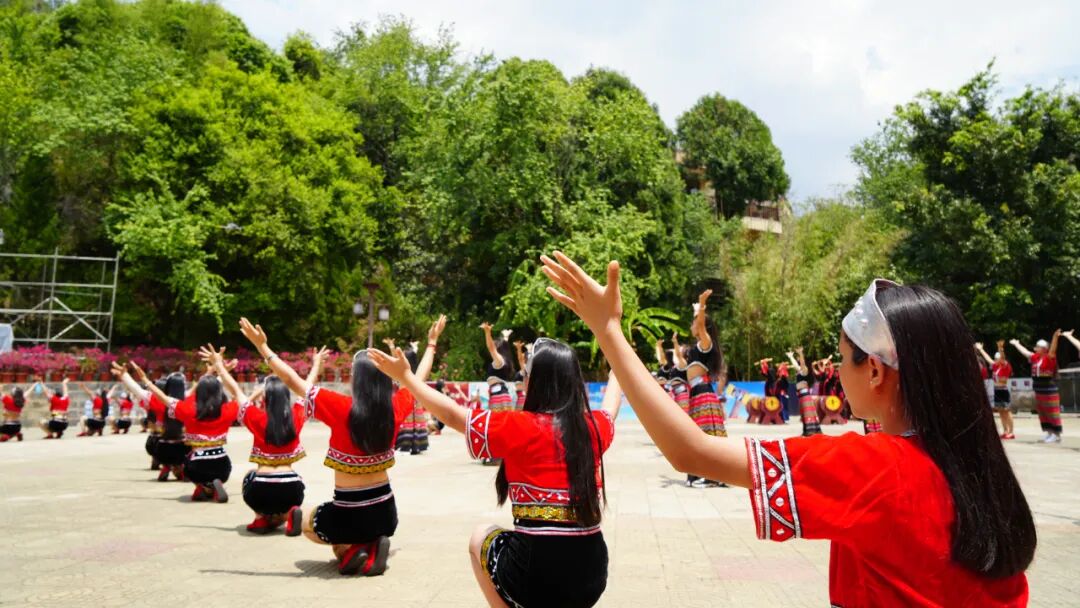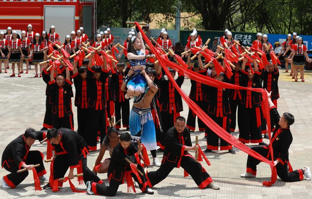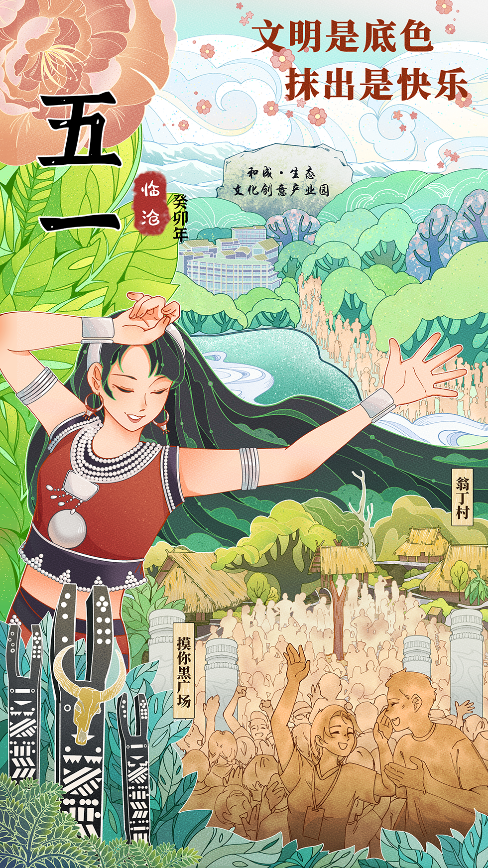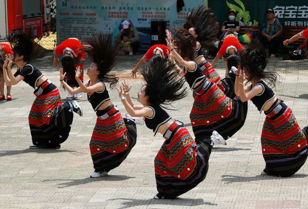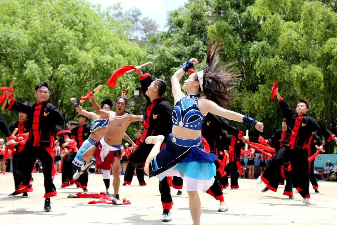 “摸你黑”狂欢区域,千人《木鼓舞》已经锤锤回响,声声荡漾,伴随着歌曲串烧《向着太阳歌唱》《大美临沧 》《 共产党西代勐》和女子群舞《甩发舞》当日的活动气氛也被推向了高潮。