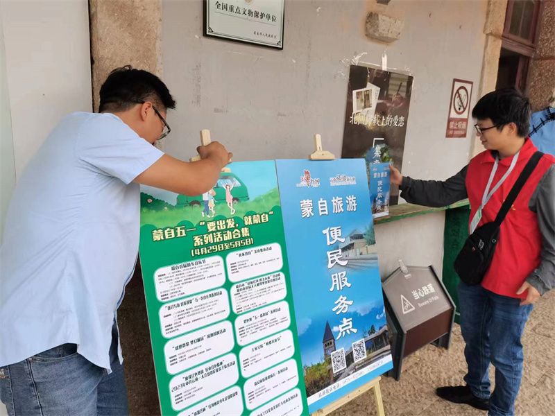 据了解,“五一”节前,蒙自市号召了1000名干部职工备战做好“五一”期间文旅志愿者服务工作。“五一”小长假首日,蒙自市有500名各类文旅服务志愿者上岗为游客提供旅游咨询、道路指引、文明引导、投诉受理、景区讲解等服务,用行动诠释责任与担当。