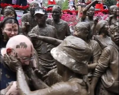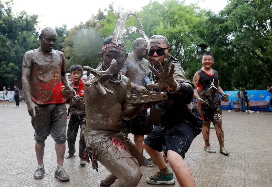 随后就是当天的重头戏“摸你黑”狂欢活动了,淅沥沥的小雨没能阻碍人们狂欢的热情,外国友人、市区两级领导、游客和市民一起文明狂欢,桶、盆、一次性饭盒、口杯等,但凡现场能找寻到的器皿齐上阵。抹完幸福的“娘布洛”,跳进旁边泳池蹦迪区边清洗边继续狂欢,“五一”的第一天临沧人民就是这么high。