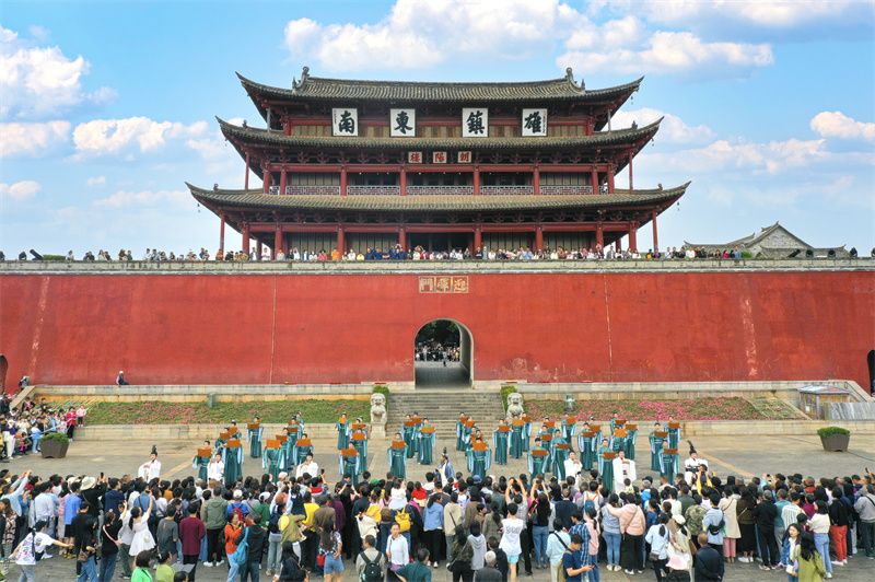 “遇见建水 烟火人间”文旅系列活动,举行了“历史里的建水古城”六大情景展示,以舞蹈、情景演出、古筝演奏等多种形式,在建水朝阳楼、翰林街、临安府衙、文庙等多个景点再现了古代建水文人学子们的生动故事,生动展现了历史里的建水生活,带领游客们穿越时光,一同走进建水的历史记忆。