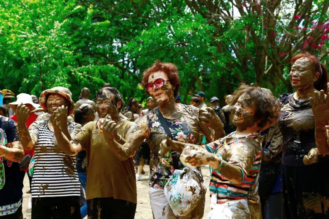 活动第三天,演员们纷纷换上便装,下场与游客们共同摸泥狂欢。“五一”劳动节有了仍在奋战的他们,高潮不断,温情满满,热爱永存!谁说狂欢是年轻人的专利,老小孩们更快乐!
