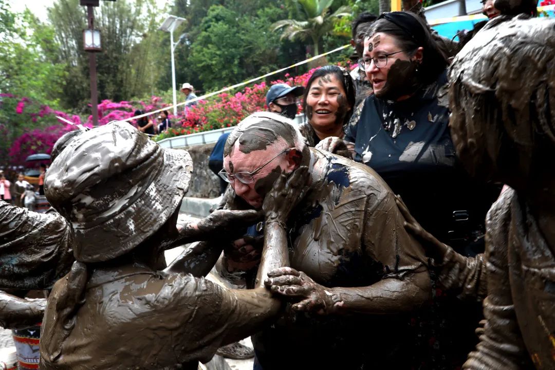 这里没有烦恼,更没有容貌焦虑,抹上香喷喷的“黑泥”众人都长一个样,“摸你黑”现场更是出现了爸爸突然找不到孩子,小朋友到处寻找父母的情形(因为大家“抹黑”后看起来都长一个样)。外国友人和佤族群众同乐,快乐原来没有国界!