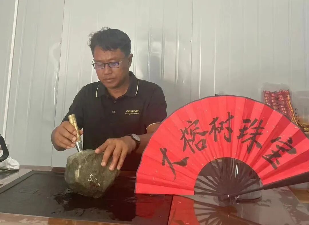刘祖代,来自云南盈江,从事翡翠行业15年,盈江县有发公司员工。