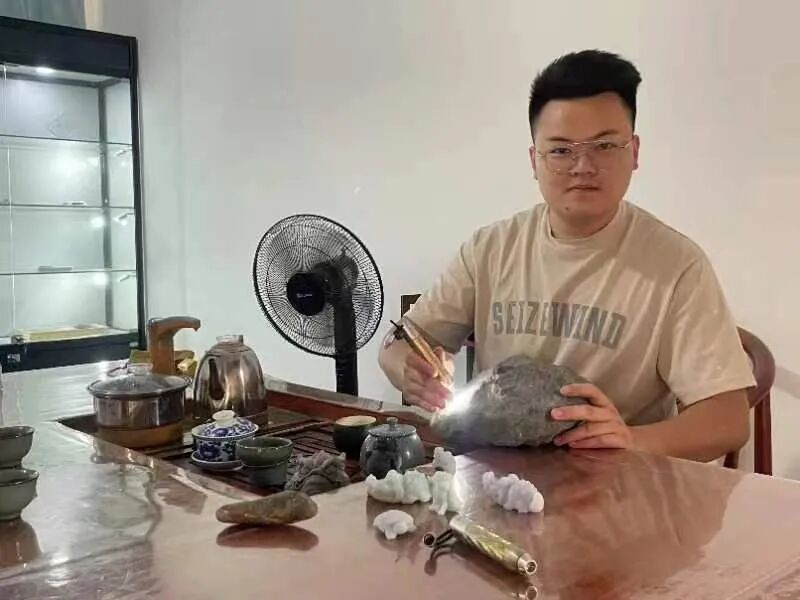 余海洋,来自云南玉溪,从事翡翠行业5年,盈江县森园珠宝店负责人。