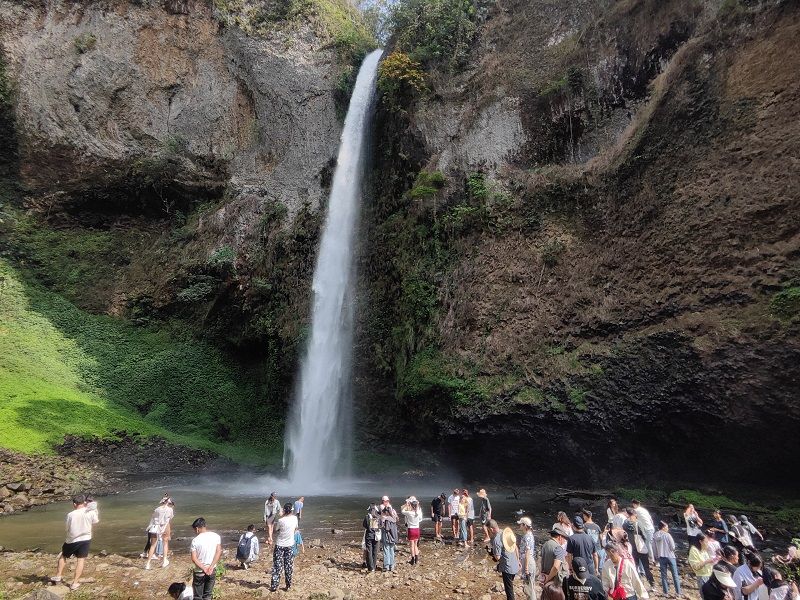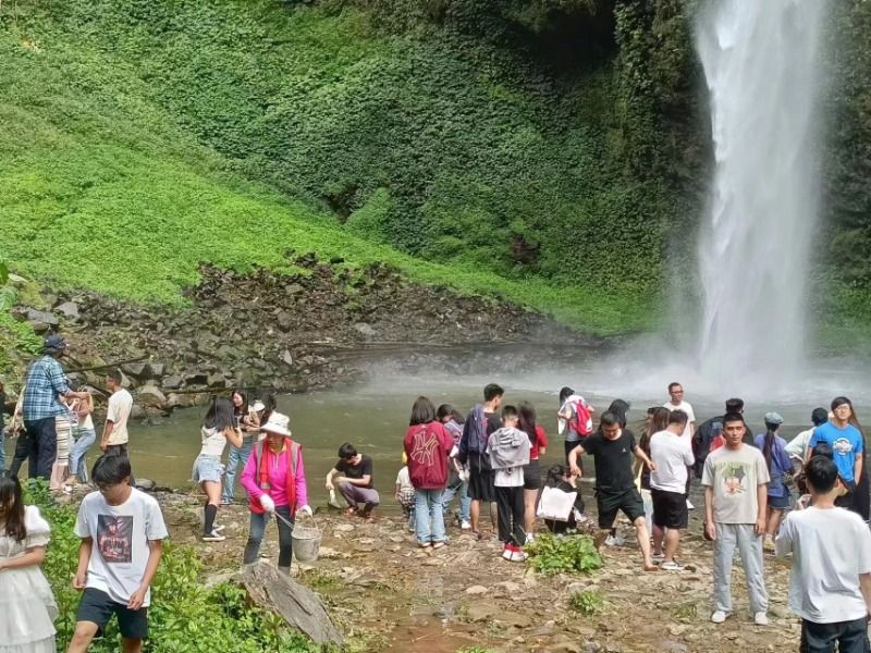 屏边这个“大窝子”是有名的“天然氧吧”,大围山清新的空气,广袤的森林一直是游客向往的“醉氧”目的地。趁着难得的假期,当然要到青山绿水之间,享受屏边的“只此青绿”。炎热的天气里,滴水层瀑布感受清凉也成了许多游客的不二之选。滴水层瀑布悬挂在几十丈高的悬崖峭壁上,如同银链飞流直下,倾注到盘注的深潭中,溅起阵阵水花,十分壮观。在日光照射下,似宝珠般耀眼夺目。这份美景令人不由得举起相机,记录下美好时刻。清凉的瀑布不仅驱散了暑气,也给游客们带来了难忘的记忆。