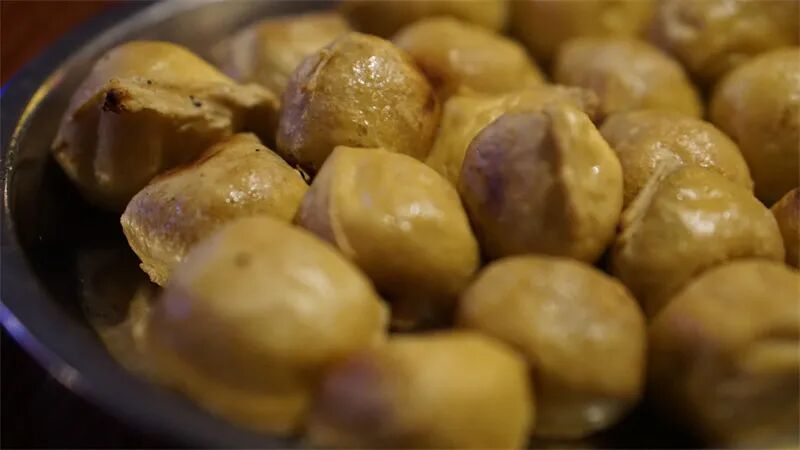 建水的烧豆腐,作为云南烧烤中绝对的头牌。烤得金黄,鼓鼓囊囊,香气四溢。围炉在旁的食客只要想吃,直接拣到碗里,配上酸酸辣辣的蘸水,趁热送进嘴里。这时烧烤师傅会捻起一枚玉米放在碗里,代表一枚豆腐,最后按数量结账。一块烧豆腐价格在5毛钱左右,吃撑也不过十几块钱。