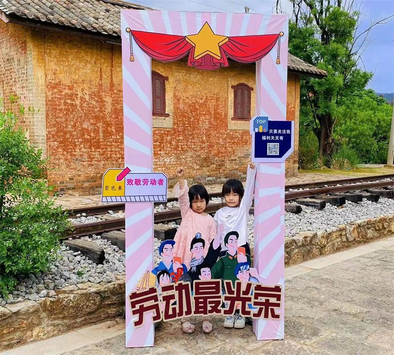 看着景区工作人员的辛勤,游客们也通过碧色寨向所有劳动人民发出了节日祝福。