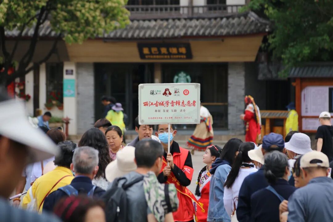 “五一”假期,游览丽江景区,都能看见“红马甲”的身影,五天丽江市线上线下共开展579个文化和旅游青年志愿服务,参加人数达11700余人。