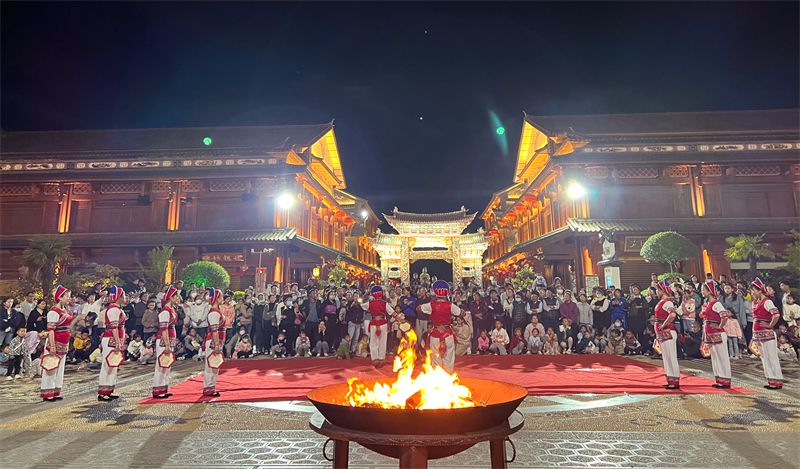 (鹤庆新华银器小镇篝火晚会,黄云程 摄)