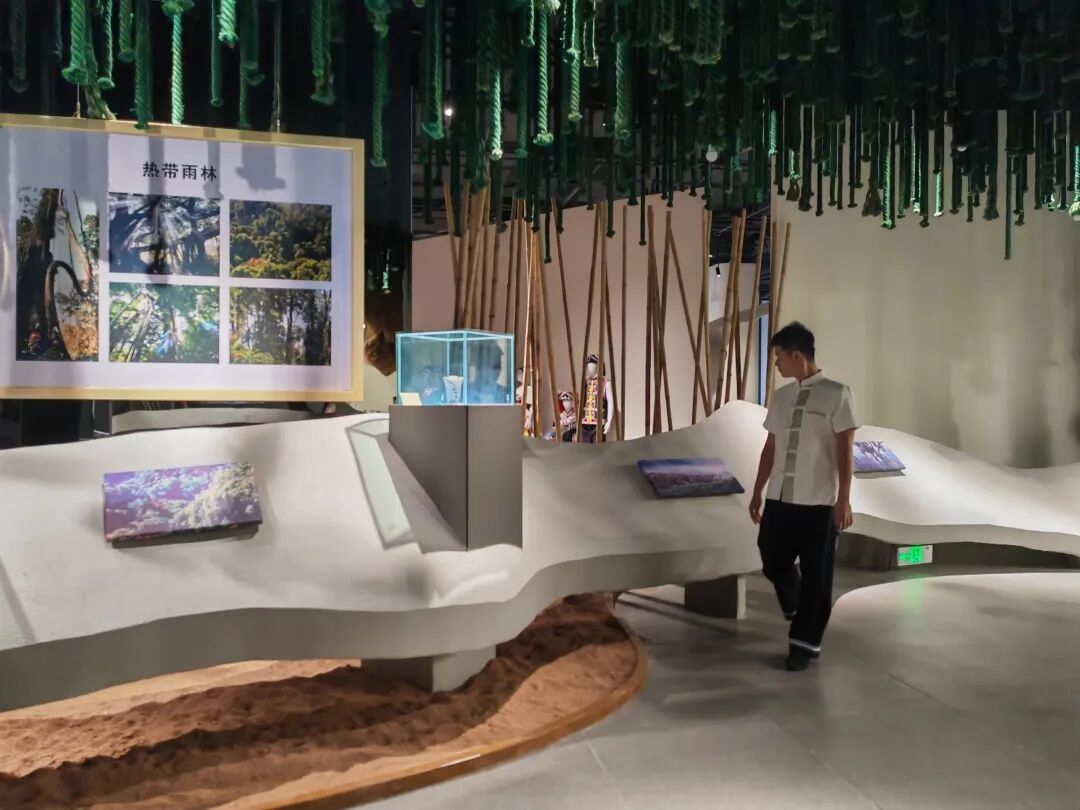 馆内设有生活展厅、乐器展厅、服饰展厅、舞蹈展厅、雨林展厅“五个篇章”,从生活方式、雨林生态资源,再到乐器、服饰、节庆文化等,通过实物展览直观呈现西双版纳民族文化、非遗文化。