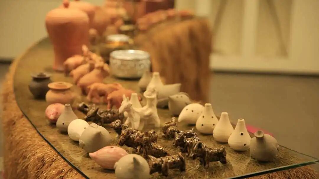 展出的傣陶、贝叶经、傣纸等精美非遗物件