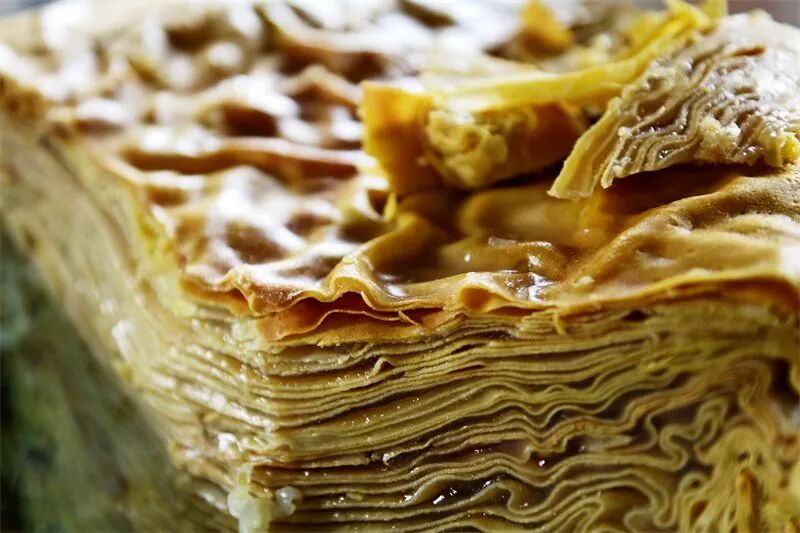 油粉是由豌豆粉调制而成,再加上香喷喷的黄豆锅巴,一层锅巴一层粉,就做成了美味的南涧油粉,冷热皆宜。调一碗木瓜醋,浇在油粉上,软糯的油粉裹挟着酸辣的木瓜醋调料,你的味蕾顿时就被打开,浓浓的黄豆香弥漫在唇齿间,令人回味无穷。一碗碗锅巴油粉,就是南涧人舌尖上无尽的乡愁印记。如果有时间来南涧,一定要来感受这份“千层之爱”。