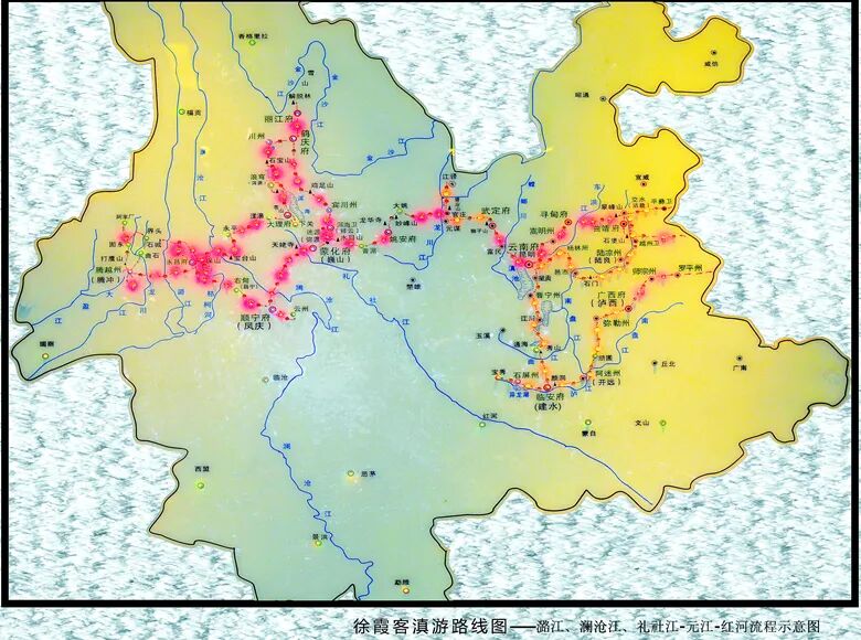 循山问水、溯江探源是贯穿徐霞客毕生旅行的一个主题。三十多年间,徐霞客涉足、考察过的中国大江长河,只说著名的就有黄河、长江、金沙江、湘江、珠江、潞江、漾濞江、澜沧江等等,其中,长江、黄河、湘江、珠江等,他探寻的是其源头,而对澜沧江,他追寻的是其下游流向。追寻的动因是他对官修史志记载的质疑。万里遐征到西南,一杖漂泊问山川。徐霞客西南之行跋山涉水,历尽风霜与孤独,纵横于金沙江、澜沧江、怒江(潞江)、龙川江、大盈江、漾濞江、枯柯河等水系实地考察,纠正了官修志书《大明一统志》的诸多错误,如指出金沙江是长江正源,否定了沿习上千年的“岷山导江”之传讹(因为在他之前没有人实地考察过,也没有人质疑过,都是坐在书斋人云亦云一仍旧说),指出枯柯河西入潞江而不入澜沧江,碧溪江即漾濞江下游,龙川江即麓川江等等。但是最让他耿耿萦怀、而又颇费周折的还是澜沧江的流向问题。