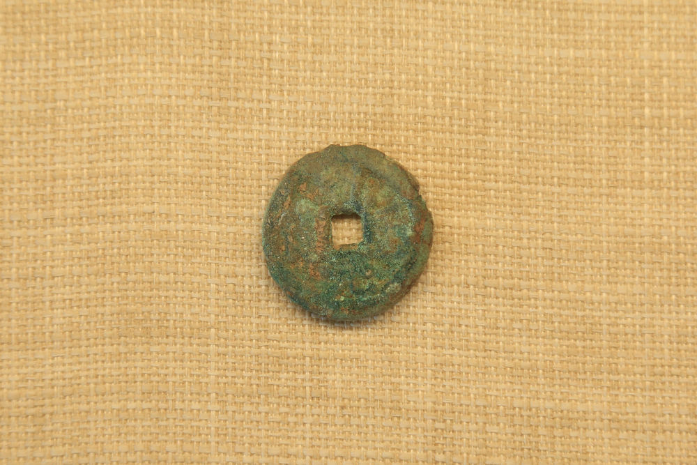 托库孜萨来(唐王城)遗址发掘出土并展出的乾元重宝。(贺浩摄)