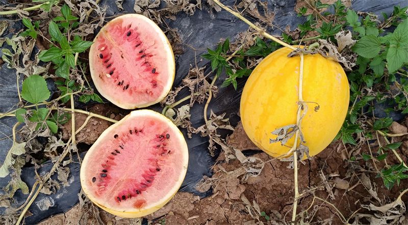 据悉,这种黄皮红瓤的西瓜名叫“金美人”,是从台湾引进的西瓜品种,种植方式和普通西瓜差不多。2月中旬、5月中旬就可以上市,成熟后每个西瓜的重量约5公斤,亩产可达3吨左右。与普通西瓜相比,黄皮西瓜果实呈椭圆型、果皮呈金黄色,有细条纹,实属卖相极好的“礼品果”。