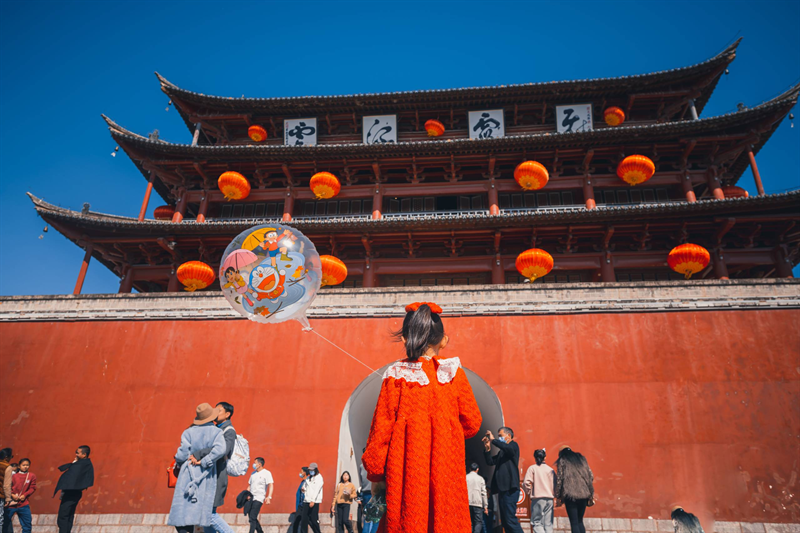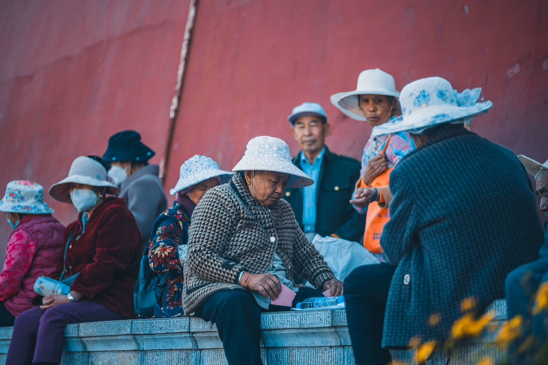 拥有600多年历史的朝阳楼,融合了元朝和明朝的建筑风格,建筑主体全用榫铆扣固,“雄镇东南”几个字便可以窥见当年建水的霸气。城楼上霸气威严,城楼下却成为了建水人民娱乐的休闲场所。城楼下,有遛鸟的、有打牌的、有和城楼合影的......这一幕幕都在诠释着建水独特的生活方式。
