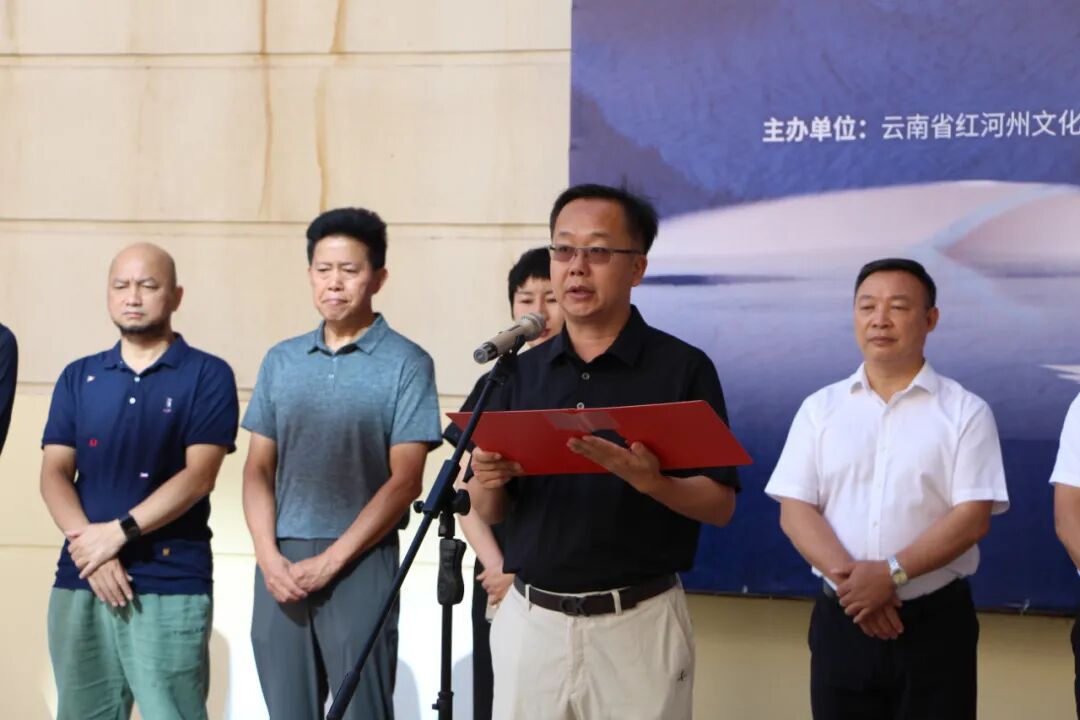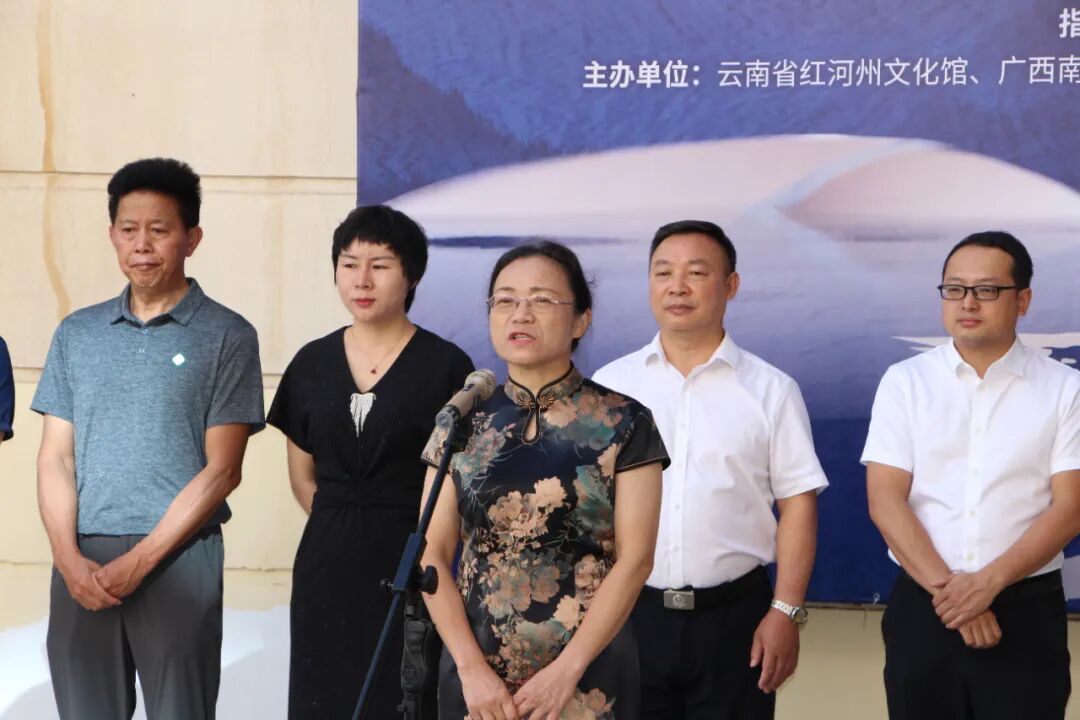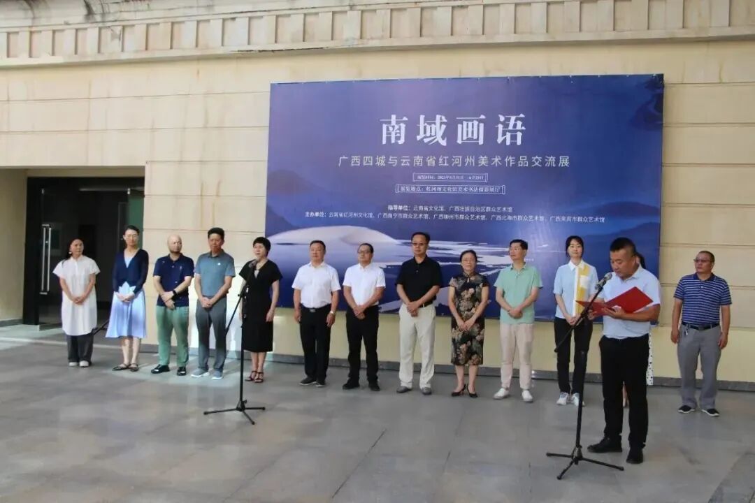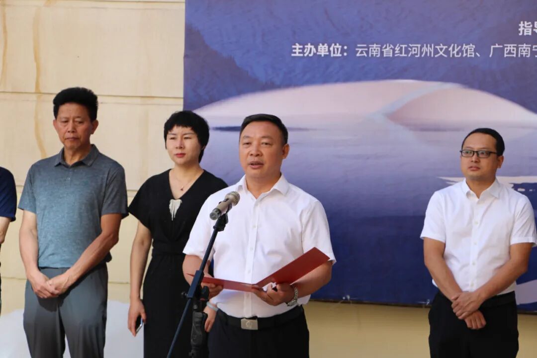 5月31日上午,由广西壮族自治区群众艺术馆、云南省文化馆指导,云南省红河州文化馆、广西南宁市群众艺术馆、广西柳州市群众艺术馆、广西北海市群众艺术馆、广西来宾市群众艺术馆联合主办的“铸牢中华民族共同体意识——‘南域画语’广西四城市与云南红河州美术作品交流展及采风活动”在红河州文化馆正式开展。