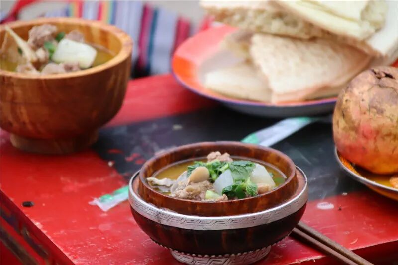 行走香格里拉,在当地居民家中用餐,你会发现,很多人都有使用自己的专属木碗的习惯。用来盛放酥油茶的小碗;用来装糌粑的大碗;用来放酥油的盖碗,用来放佐料的套碗。木碗在迪庆香格里拉地区居民的生活中有着极其重要的分量。