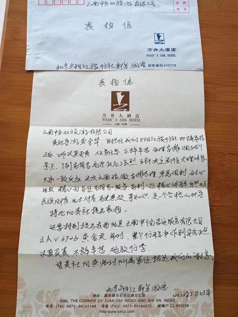 “没有想到会收到游客所写的表扬信,因为我们公司一直都在面向老年游客做品质旅游产品、康养旅居产品,面向的是客群是老年游客,所以更是会注意提供优质服务。比如,开车注意车速、要平稳、帮助游客码放行李是硬性要求。此外,在大巴上,我们还会为老年游客准备热水,提供给他们饮用。在行程安排上,我们努力做到合理安排、避免游客劳累。””龚金华表示,以后,他们还将继续做好旅游产品、提供优质服务,让游客在云南游得安心、舒心,满意而归,争取赢得更多回头客。