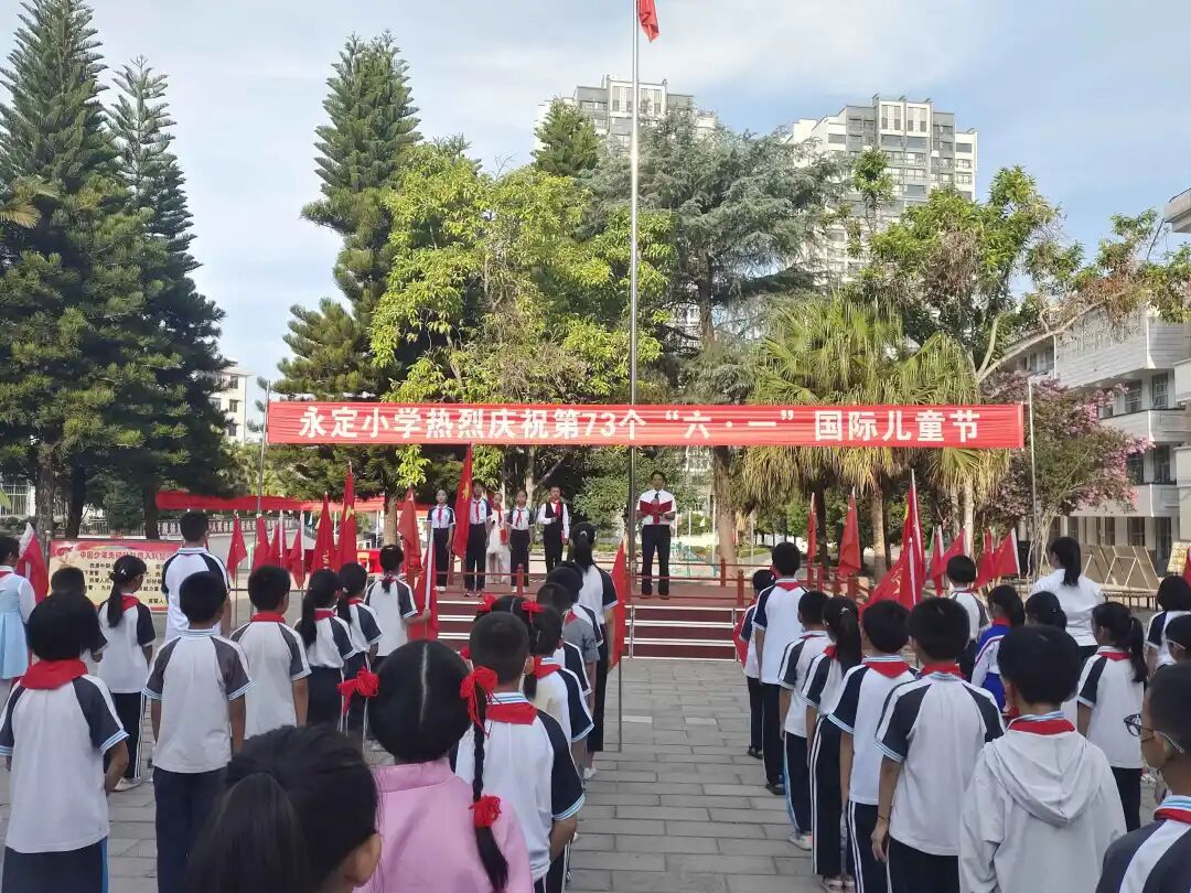 在楚雄州永仁县永定小学,孩子们兴高采烈地表演文艺节目、进行趣味游园活动、开展“永远跟党走 争做好队员”主题班会、参加书画展等系列活动,共同庆祝自己的节日。在“以德树人、以美育人、以文化人”的教育理念指引下,在“让艺术弥漫校园、让艺术滋养生活”的校园文化氛围里,小朋友们戴上鲜艳的红领巾,穿上漂亮的衣服,尽情展示新时代少年儿童朝气蓬勃的精神面貌。