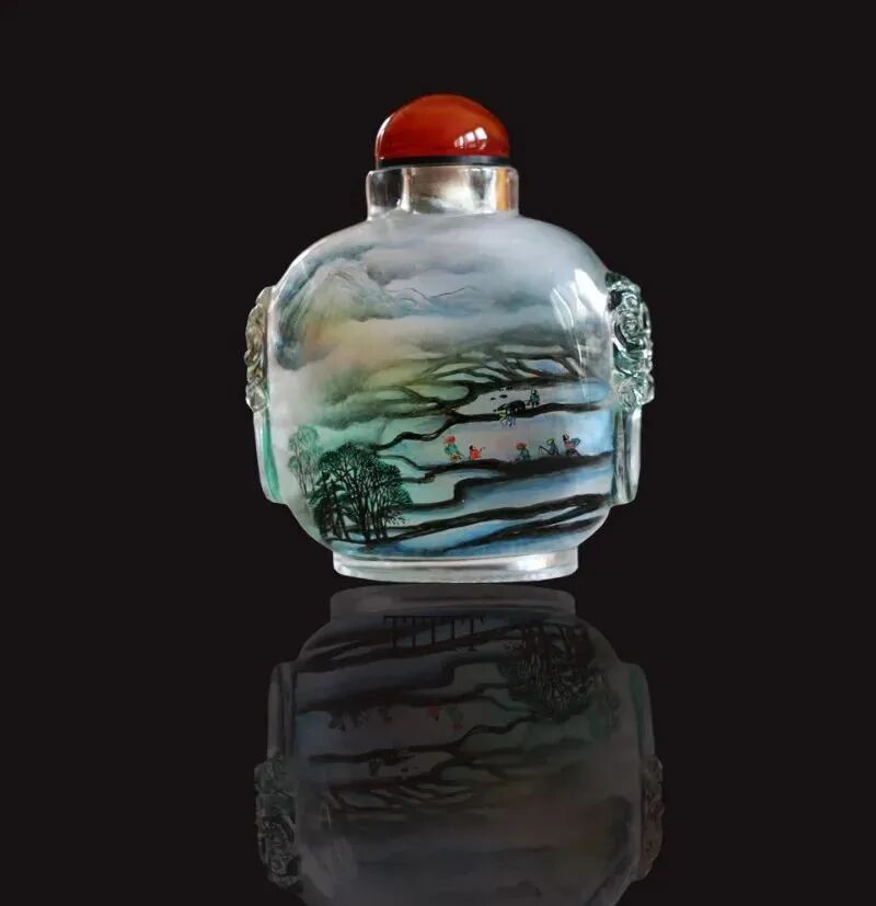 内画出现于清代,是我国特有的传统工艺,素以“寸幅之地具千里之势”著称,起源于画鼻烟壶,它是以特制的细笔,伸入玻璃、水晶、琥珀等材质的壶内反向作画。现代内画技艺有京、冀、鲁、粤、秦等流派。内画流派主要是从地域上区分,技艺并没有多大差别。