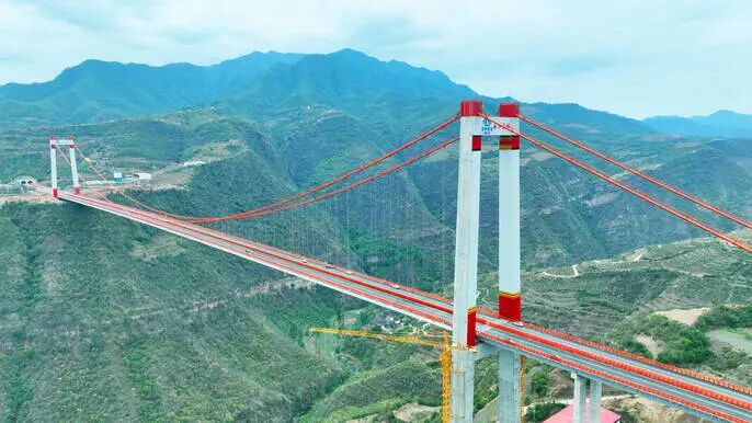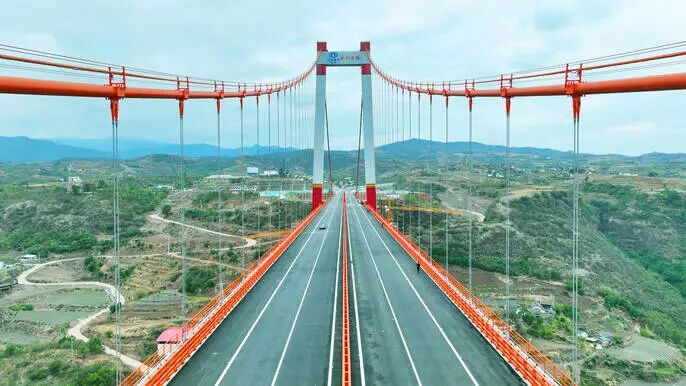 永仁大桥全长1668米,采用双塔单跨钢箱加劲梁悬索桥设计,永仁岸主塔高度为192.7米,大姚岸主塔高度为107.7米,桥面距江底河峡谷谷底高达350米,是云南第三大悬索桥。大桥主跨钢箱梁共计77个节段,用钢量1.28万吨,主梁最重节段达183.8吨。