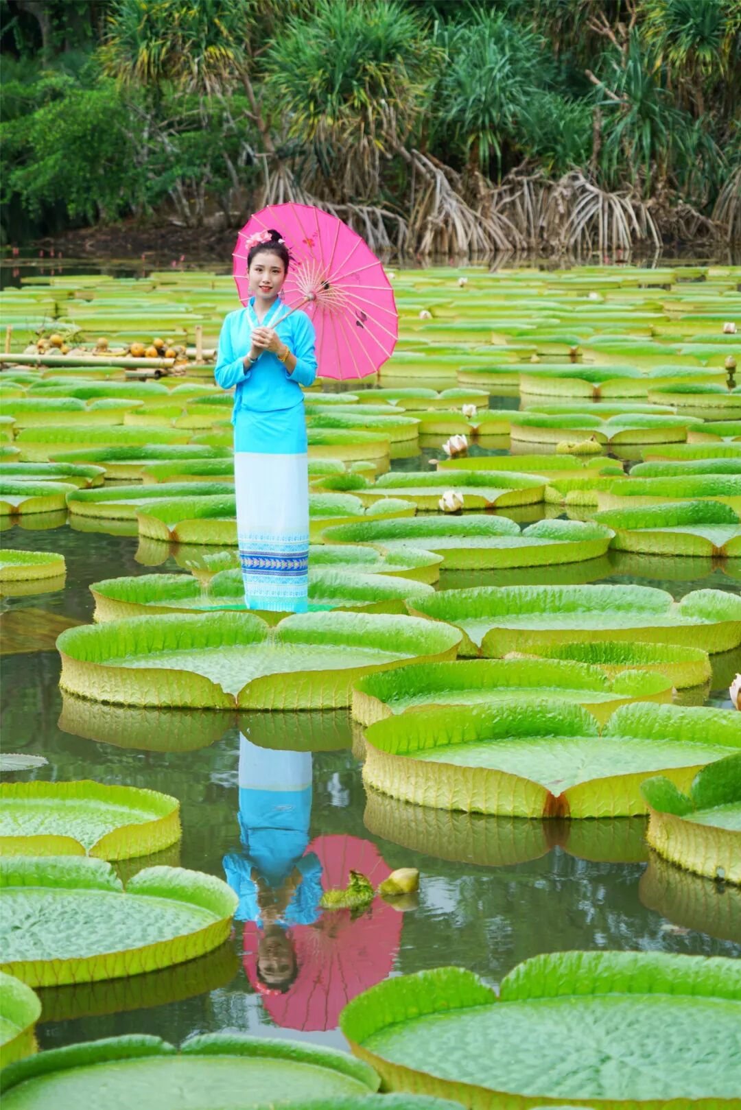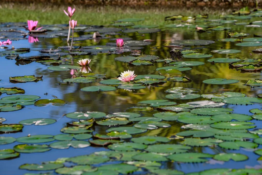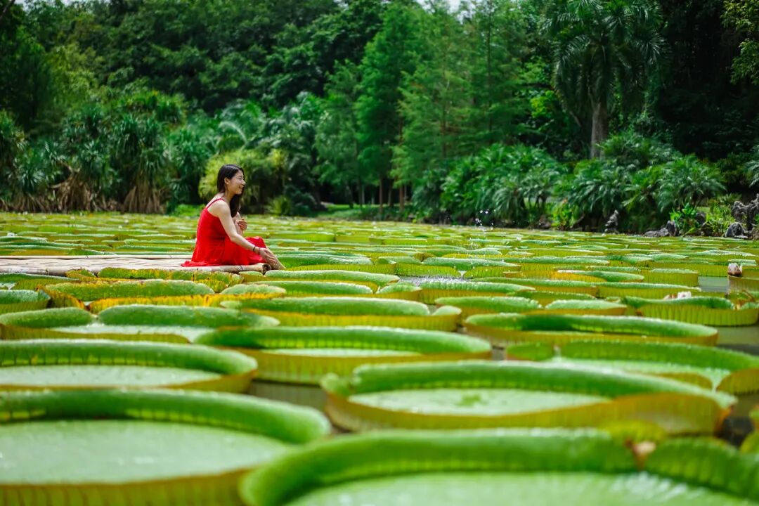 6月~10月是中科院西双版纳热带植物园王莲的最佳观赏时间,园区池塘里巨大的叶片如一个个大玉盘,错落有致地铺满整个水塘,游客除了能一睹王莲风采,还能体验王莲“水上漂”。