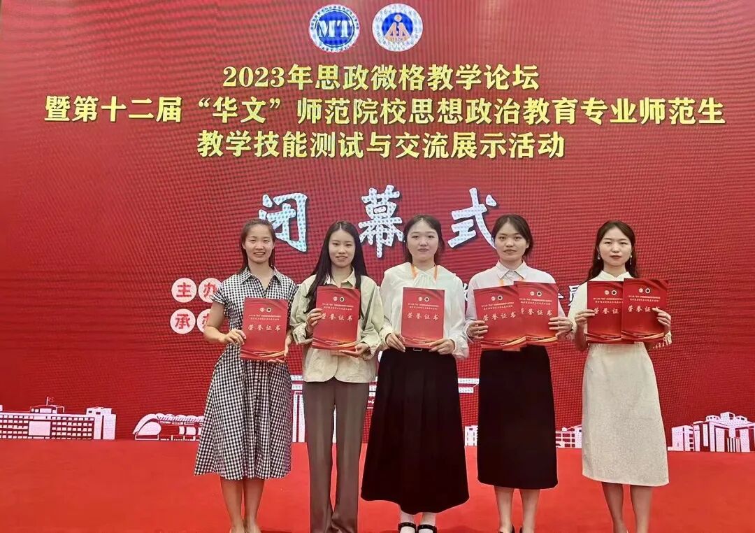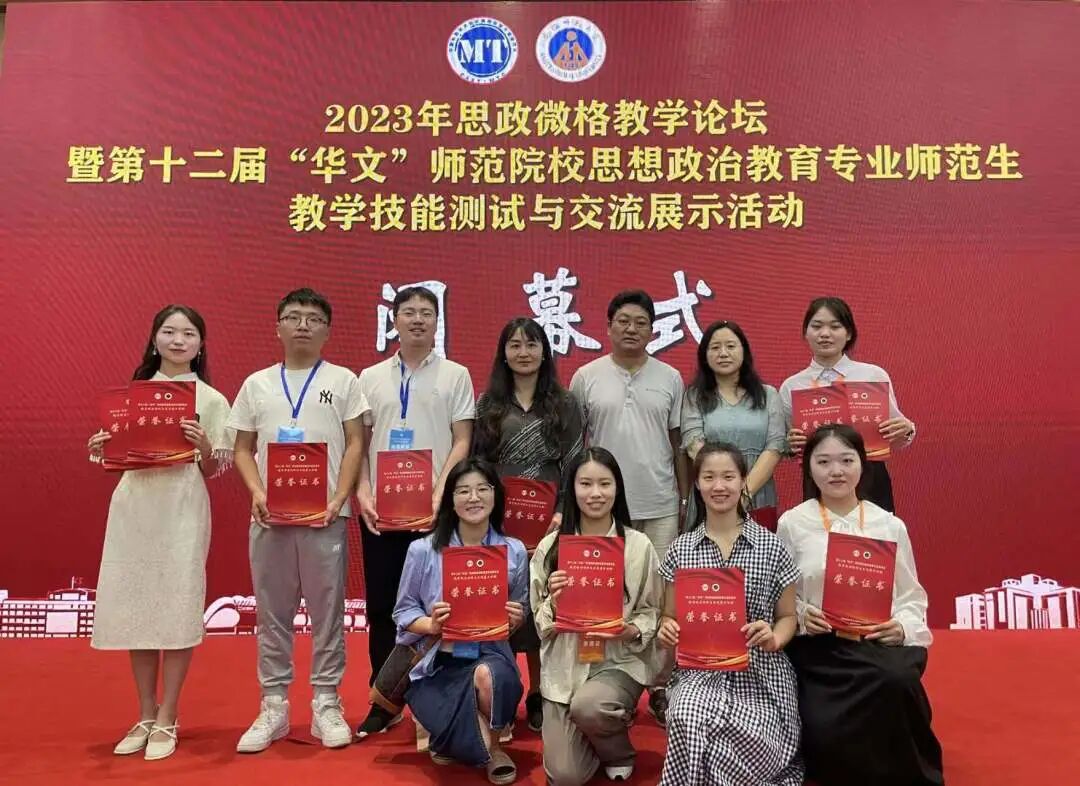 近日,第十二届“华文”全国师范院校思想政治教育专业师范生教学技能测试与交流展示活动在安徽师范大学举行。全国100多所高校的450余名学生参与比赛。经过激烈角逐,云南师范大学马克思主义学院学子取得一等奖3项、二等奖8项、三等奖1项的优异成绩。