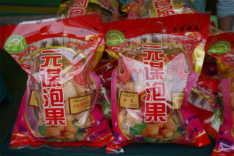 元谋泡果表面金黄油亮,内呈雪白网状,形似丝瓜瓤,吃起来香、甜、酥、脆,入口即化,化而无渣,营养丰富,且价格亲民,均价10元一袋,深受广大消费者的喜爱。