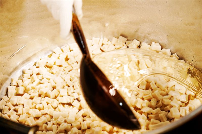 元谋泡果主要以糯米、蜂蜜、白芝麻、白糖、饴糖、香油为原料,从泡米、磨米、蒸、油炸、调制糖汁到成品制成,所有工序都严格按照传统技艺制作,无任何添加剂,是纯手工制作的传统美食。