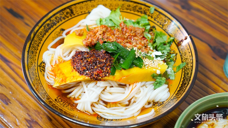 风味独特的玉溪凉米线,是玉溪人夏日里的首选美食。粗软硬适中的米线,依次加入韭菜、酱油、姜蒜水等调料,再倒入秘制的酸醋,最后浇上一勺清亮、鲜红的辣椒油,一碗酸辣爽口、解暑开胃的凉米线就可以上桌啦,吃上一口,让人直呼过瘾!