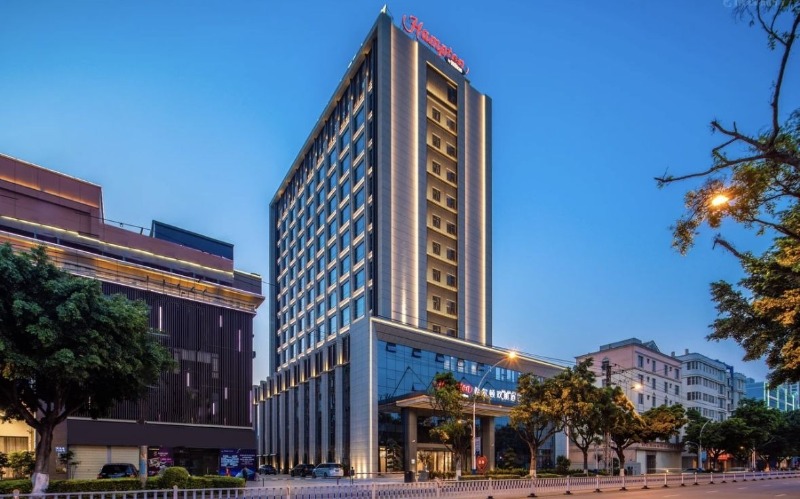 酒店整体格局由主楼、裙楼、停车场、多功能厅和后花园组成,外观沉稳大气,线条简洁流畅,传递着品牌文化和空间力量。停车场设有300个停车位,更配备了10台充电桩,能够同时满足20辆新能源车辆的充电需求。此外,酒店交通位置优越,毗邻聂耳公园,周边极中心、沃尔玛等商圈密集分布,为商旅宾客带来舒适、便捷的入住体验。