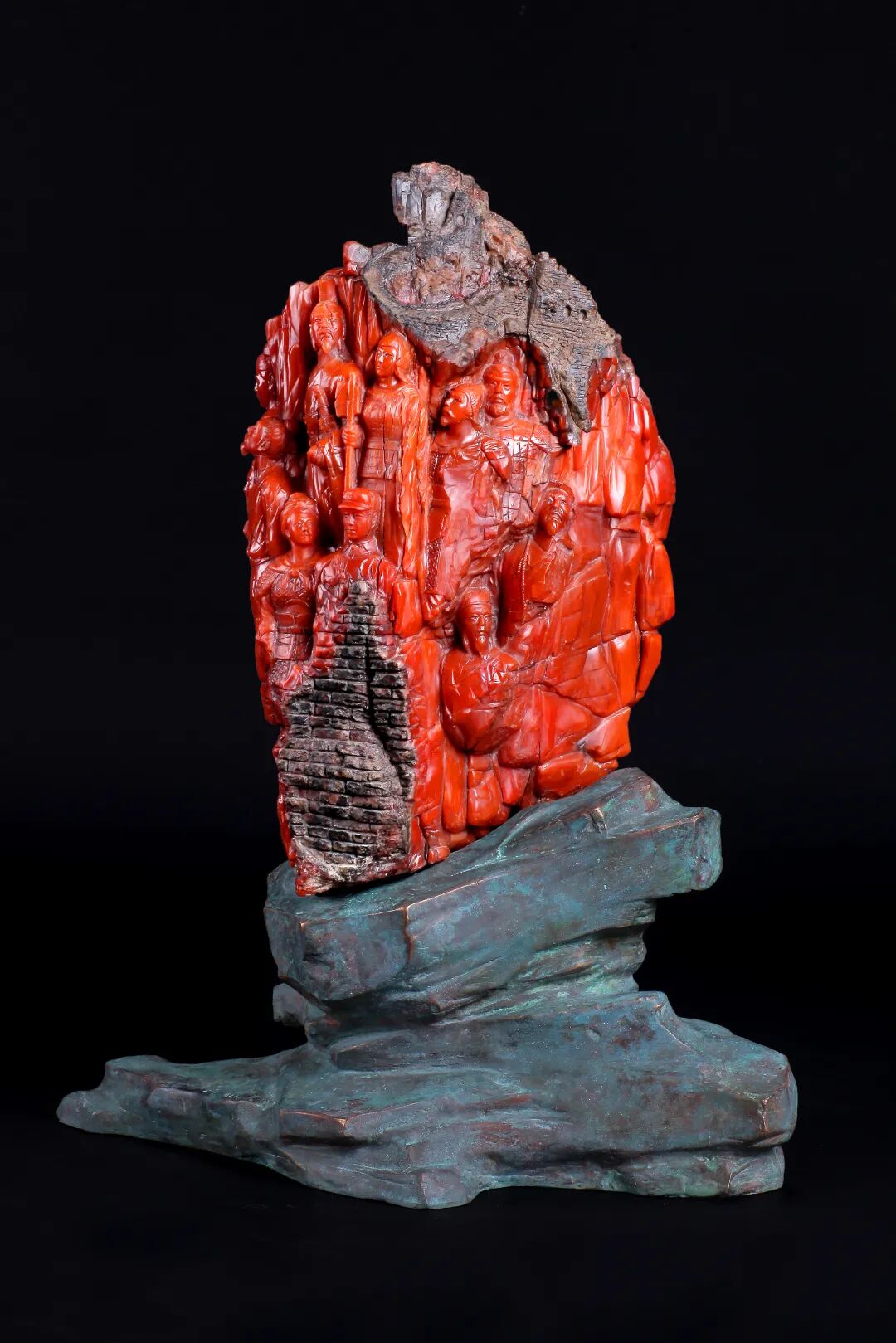 作为此次文化节的压轴展品之一,这是雕刻师刘东献给中华人民共和国成立七十周年的玉雕艺术礼物。以长城为背景,刻画出十四个神态各异却又互为整体的历史重要人物,而重达15.8千克的南红玛瑙雕刻艺术品更是罕见。