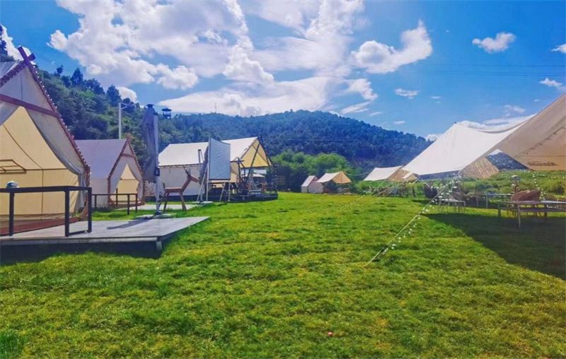 白墙、飞檐和浪漫灯光掩映下的雨露乡蘑菇小屋,神韵更显典雅端庄。