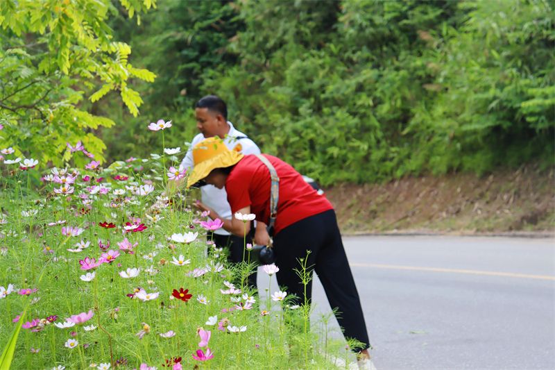 同心镇党委、政府以提升绿美主人翁意识为出发点,积极动员各方力量捐花捐树,种植各具特色的分段街景,有力推动了绿美乡镇建设的落地落实。“我们捐了杜鹃花、三角梅等花种,由林业员共同管理,现在花开得很美,我们十分有成就感!”同心镇林业服务中心主任杨梦醒开心地说。各村组根据当地气候、土壤等条件,种植适宜的绿植、果树、蔬菜、花卉等扮靓村组景色。目前,全镇移栽炮仗花、凤凰树、红花檵木、三角梅等绿植12000余棵,玛格丽特菊花、格桑花、太阳花、波斯菊若干,为村镇绿美梳妆靓颜。