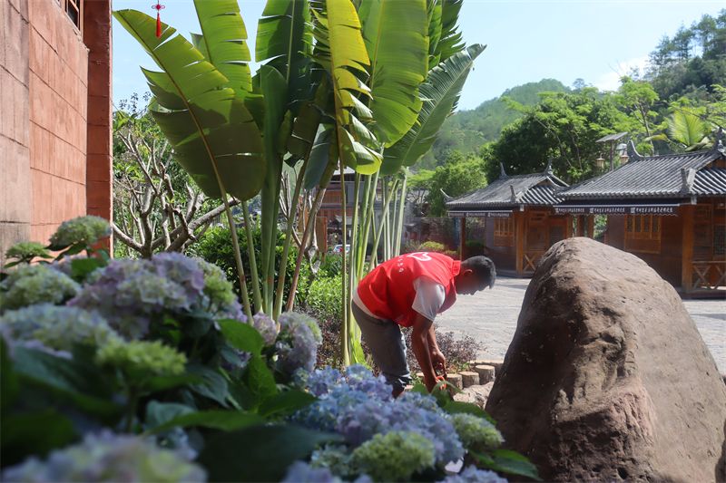 走进同心村刀寨,红花绿柳映衬着灰墙青瓦,篱笆栅栏围成菜园畦畦,一户户家庭“小美”,外塑出村庄“大美”,实现经济效益、景观效益和休闲功能的有机统一。“我们用瓦片在院子里打造了菜园,还种上了兰花、多肉等好养活又美观的花,客人们不仅可以品尝农家小菜,还能欣赏到如诗如画的美景。”改造庭院后经营起农家乐的刀家伟高兴地说道。