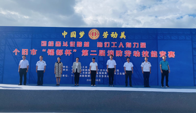 近期,由个旧市总工会、市应急管理局、市人力资源和社会保障局、市卫生健康局、市消防救援大队联合举办的个旧市“锡都杯”第二届消防劳动技能竞赛在市消防救援大队大屯消防救援站顺利开幕。市委副书记、市长汪霞,市政协主席赵钊等领导出席开幕式。