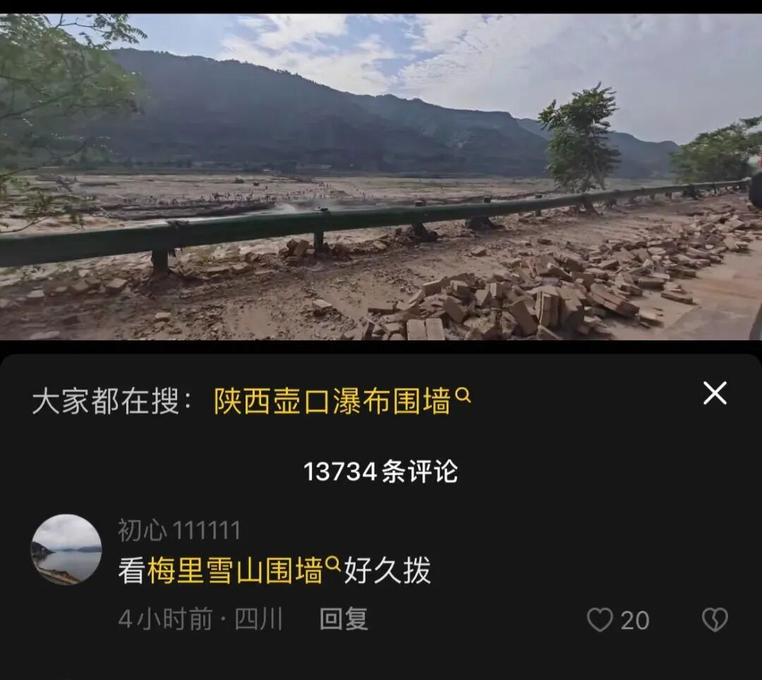 7月1日,有网友拍摄视频爆料,黄河壶口瀑布旅游区(陕西侧)沿线的围墙被拆除。