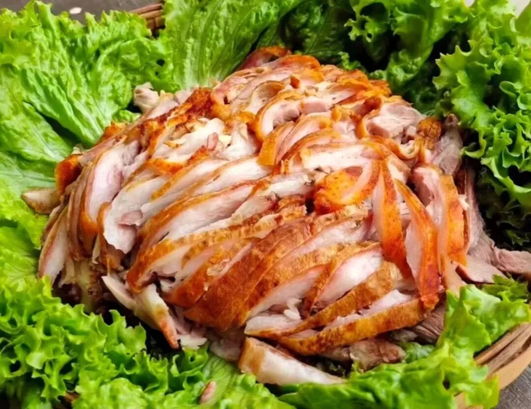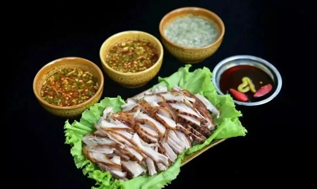 盈江火烧猪独具特色,皮脆肉嫩,可口不腻,是待客佐酒的上乘菜。吃的时候把肉切成薄片,再配上用酸腌菜膏、折耳根、芫荽、小米辣做的蘸水,那滋味别提有多美味!