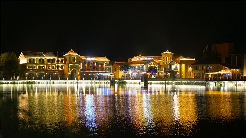 夜幕降临,红河水乡陆续亮起点点灯光,伴着音乐的节拍跳动,动人的水舞秀打破沉寂的黑夜,点亮小镇的夜晚。伴着灯光,看烟波画舫,赏一园美景,体会这彩云之上的“烟雨江南”。小镇里极致的中式建筑,如名家笔下的水墨画卷,一砖一瓦,尽显韵味。