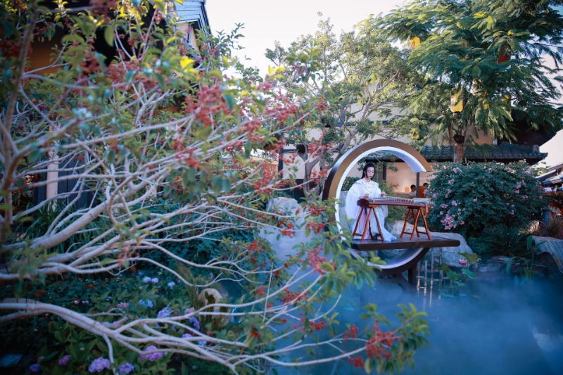 以五龙湖千亩生态风光为底色,以建水千年紫陶文化为核心的建水紫陶里街区,以汉唐建筑风格为特色,将紫陶、唐文化与景区营销活动相结合,不定期开展舞台演艺、汉服巡演、古琴演奏等文化展演活动,再现国风盛宴。街道两侧的建筑飞檐翘角,明黄的灯笼更有一种复古的感觉,好像回到了千年之前,在“长安”的街道上徜徉。来到这里,品美食、做工艺品、看展演,见证盛唐的繁华。