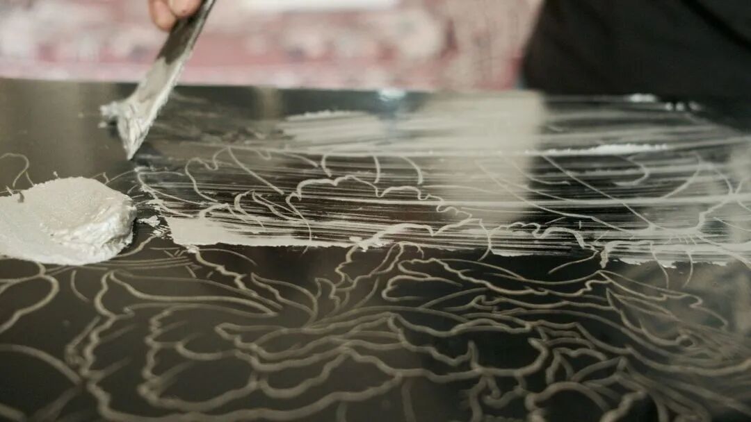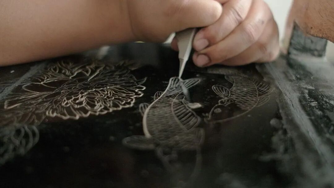 昭通漆刻的工艺流程大致分为髹漆、刮灰、打磨、贴灰(糨灰)、上漆、绘画、雕刻、填彩、打磨推光等,其中很多步骤更是根据雕刻画面的复杂程度需要反复作业十几二十次。线条流畅、形象生动、色泽均匀、富丽堂皇,是这种工艺的主要艺术风格。