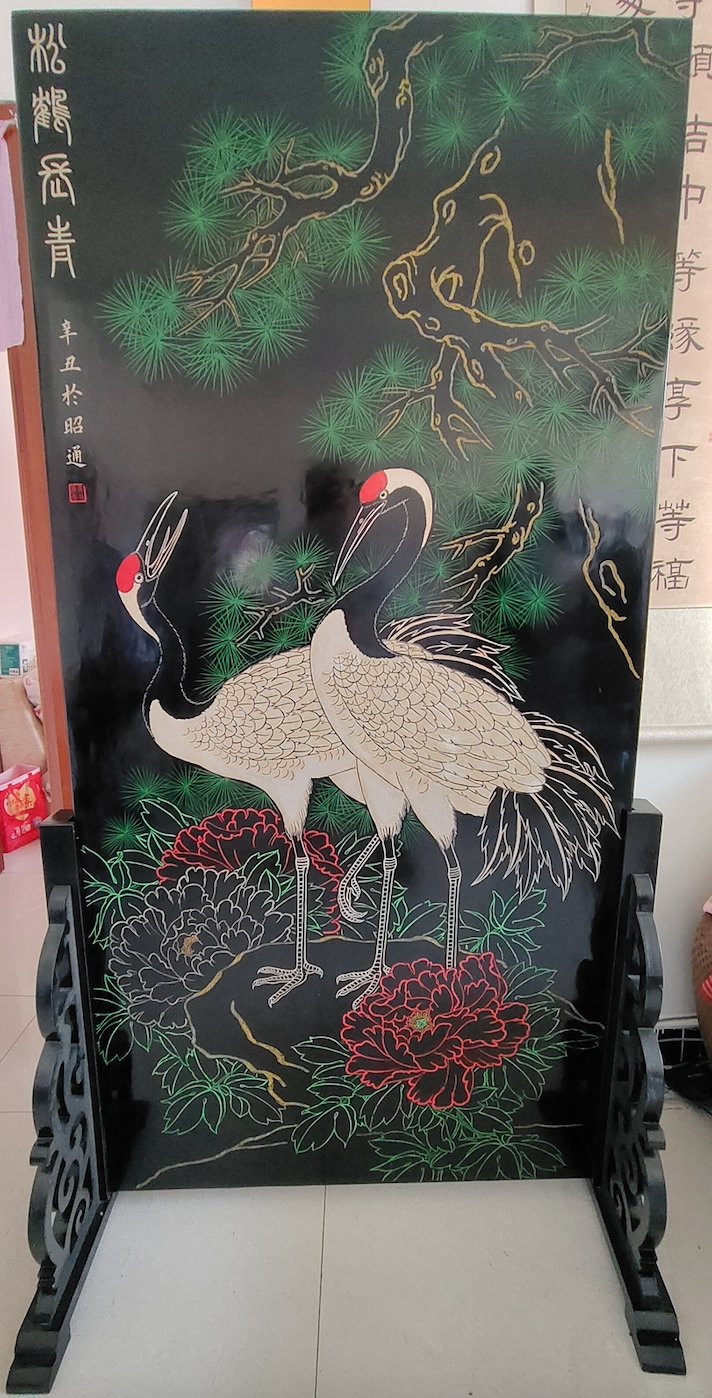 昭通漆刻的图案内容一般为花、鸟、鱼、兽等寓意吉祥的传统图案,如白鹤闹松、凤穿牡丹、梅兰竹菊、喜雀闹梅、二龙抢宝等,也有麻姑献寿等人物作品,或者时下一些文人墨客的书画作品。绘制内容可由工匠自由发挥,也可根据顾客要求或顾客提供的内容进行雕刻。