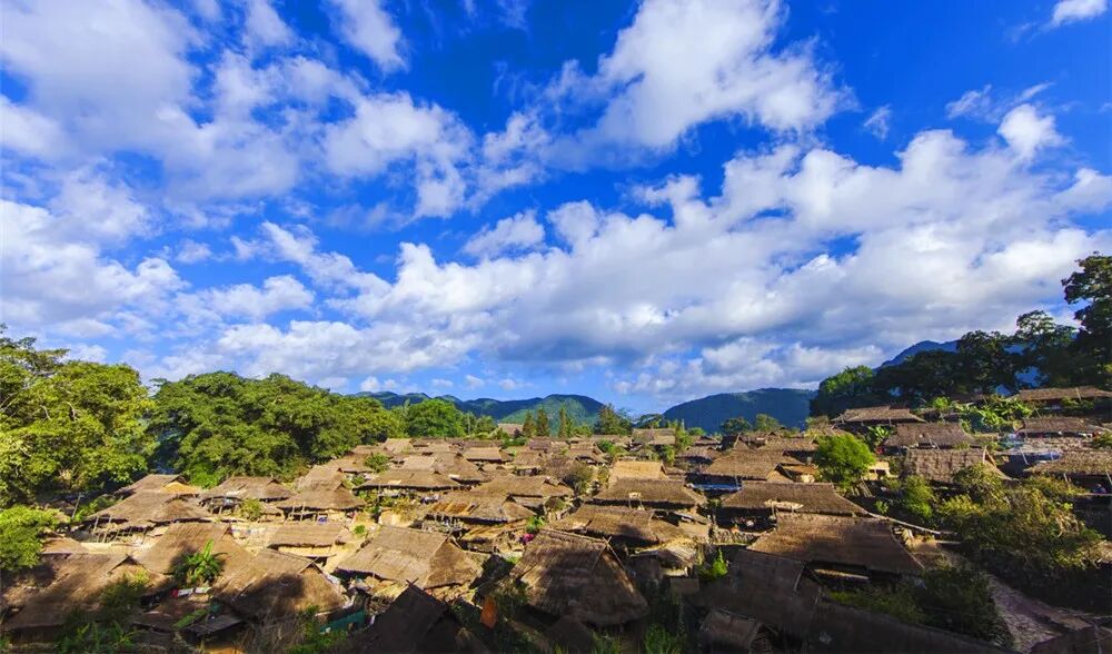 这是被叫做“中国最后一个原始部落”的地方——翁丁佤寨,至今保留着原始佤族民居特色与风土人情。佤族有着自己的民族创世史诗《司岗里》,佤语“司岗”是崖洞的意思,“里” 是出来,“司岗里 ’就是从崖洞里出来,所以这是一个自认从岩洞里走出来的民族,有着神奇独特木鼓通神的习俗。翁丁佤寨依山而建,四周都是片片茂密的树林,东面的树林称为“神林”,佤语称“亚莫韦”,“亚”是“森林”的意思,“莫韦” 是寨神,大抵是这片密林守护了寨子将近有四百多年的历史,佤族人民便对自然和生命有了天然的敬畏之心。