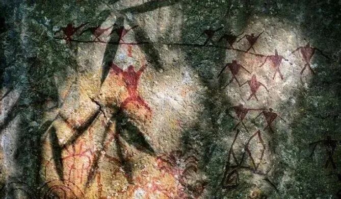 司岗里崖画谷景区的崖画构图简练、古朴自然,生动地展现了一幅幅佤族先民原始生活的百态图,是佤族先民用智慧和丰富的想象力留下的印记,在历经千年的风雨侵蚀之后,依然光鲜如初,人们可以从赭红色的图画中辨认出人物、动物、村落,以及狩猎、舞蹈等场景。