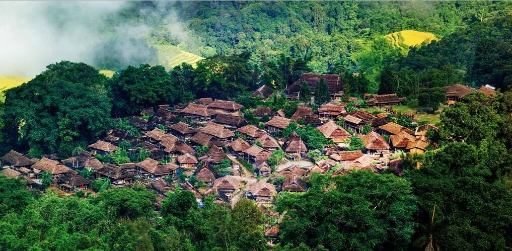 翁丁寨子中始终有一层薄雾笼罩,朝起,薄雾似轻纱,将水汽均匀洒落在寨子的每个角落;霞落,薄雾似青烟,在风的拂动下,弥散飘……若不是亲自走进来,竟以为这一朝一夕间,古寨子已沉睡在林间。