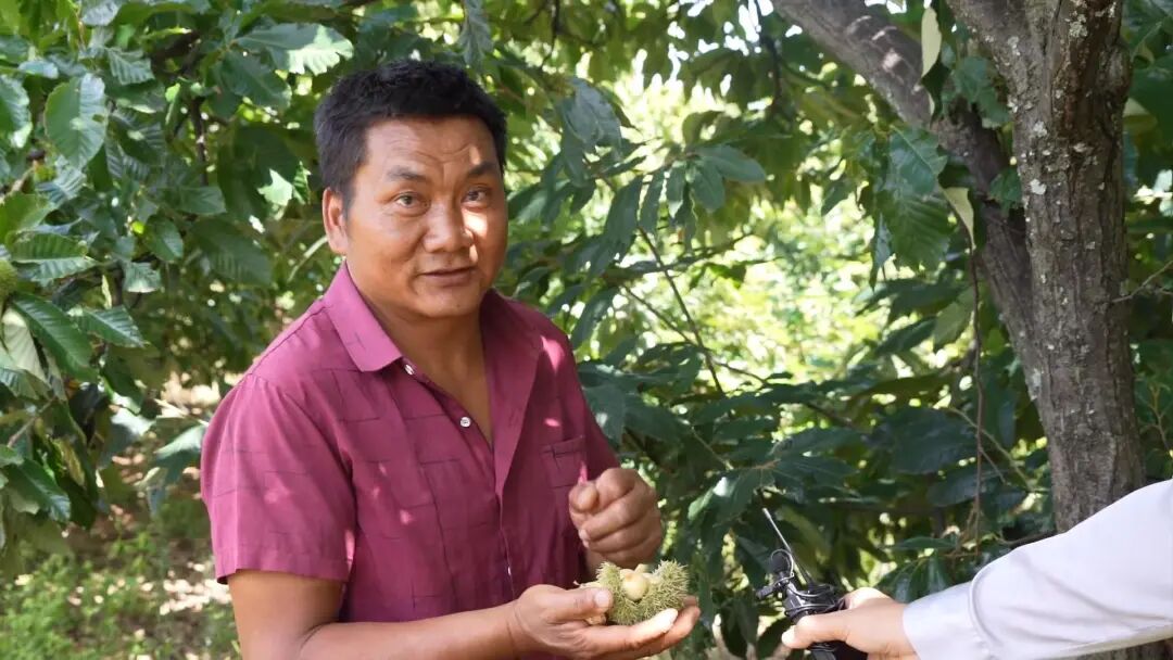 板栗种植户 陈福顺说:“打板栗就是照着大个的打、照着黄的打,小点的一两天之后又成熟了,就又能打了。”