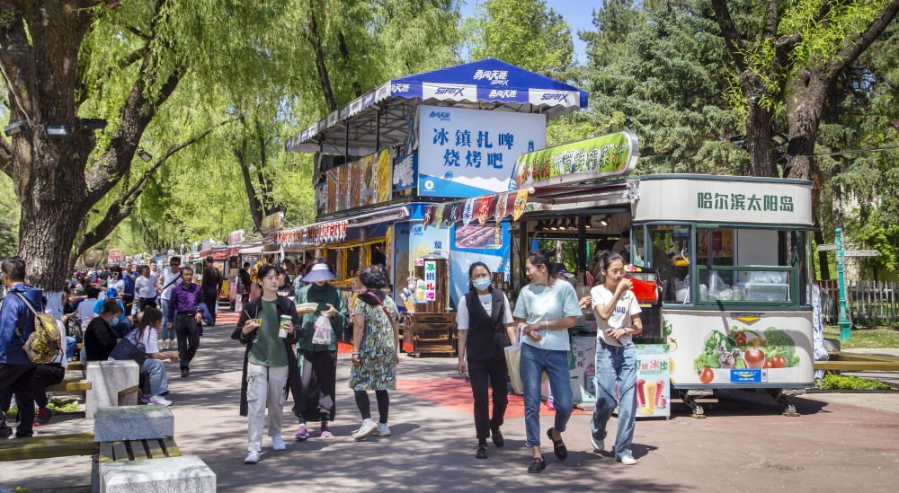 刚刚入伏,位于城市中心的江漫滩湿地——黑龙江哈尔滨太阳岛风景区,来自全国各地的游客络绎不绝,人们一边品尝特色冷饮,一边拍照打卡,享受着夏日的惬意。
